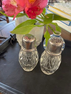 Vintage Lead Crystal Salt and Pepper Grinder | Sterling Plate Top