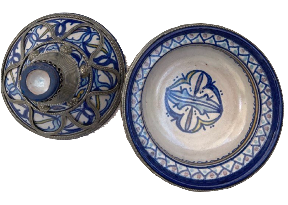 Moroccan Hummus/Sauce/Tanjine Covered Dish | Ceramic & Silver | Fez